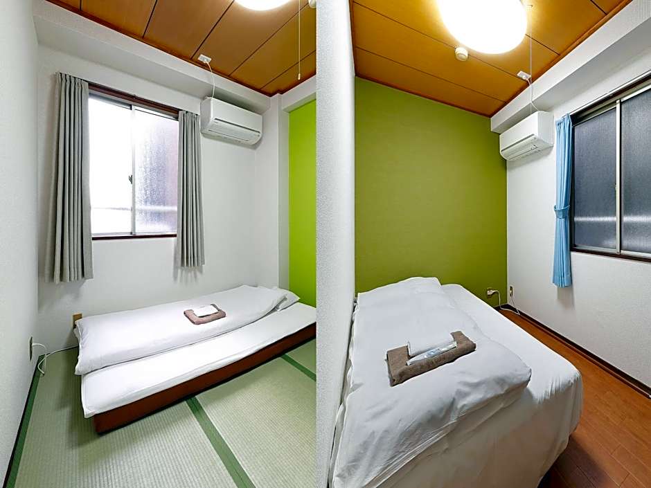 The twin room offers air conditioning, tatami, as well as a shared bathroom featuring a shower and a bidet. The unit offers 2 futons.